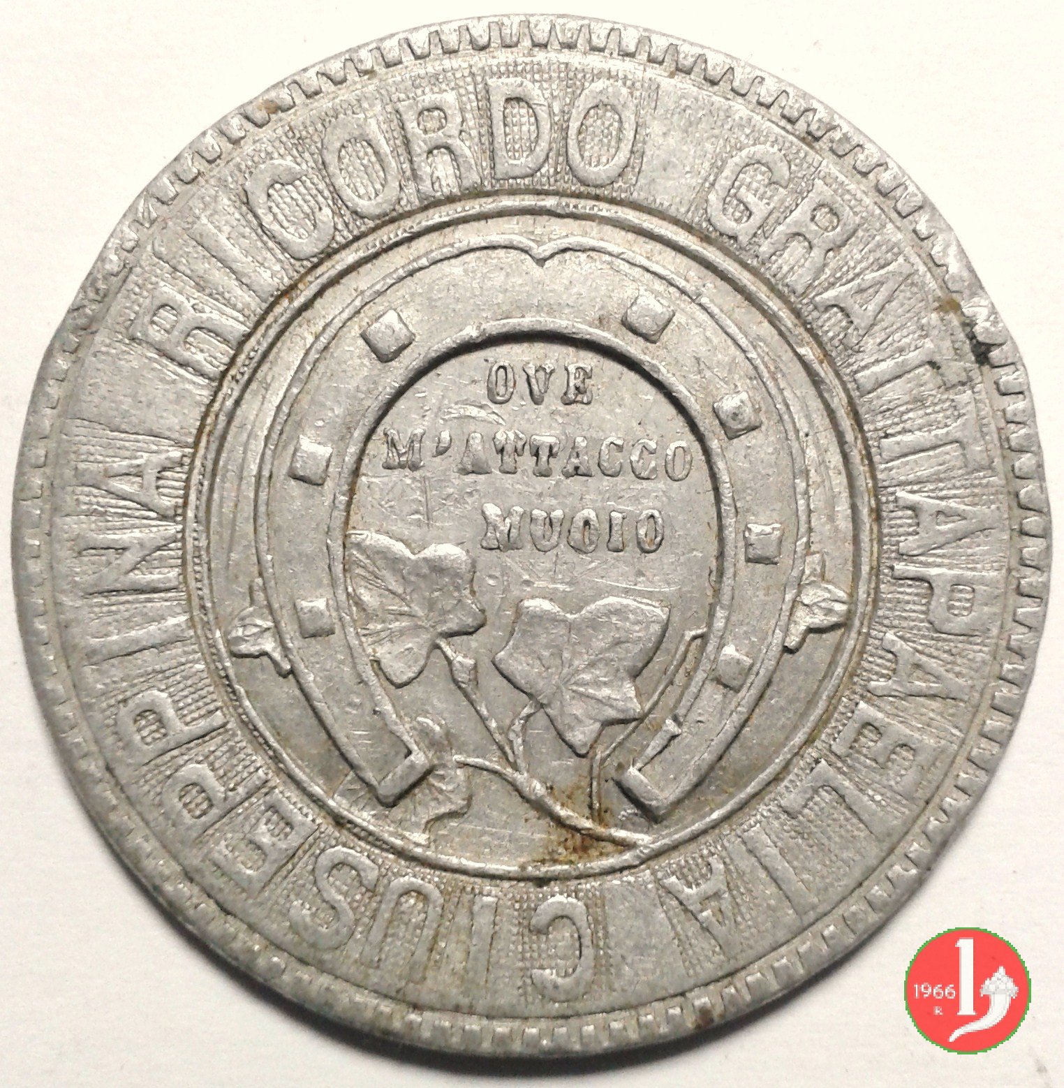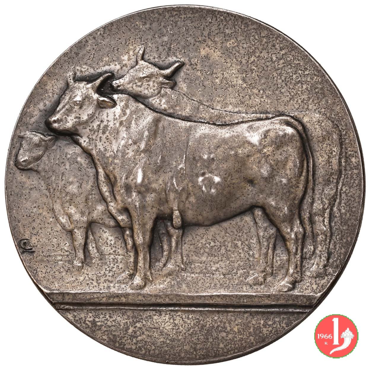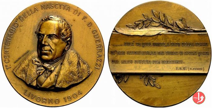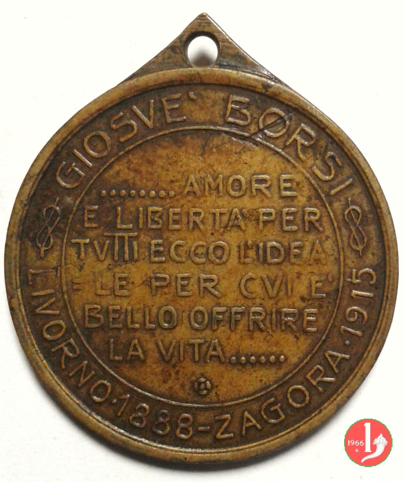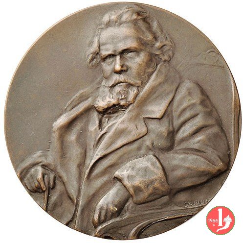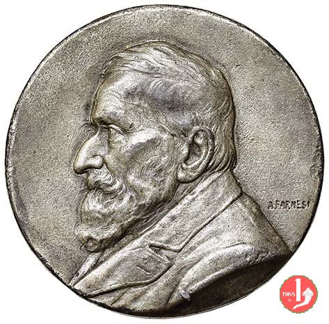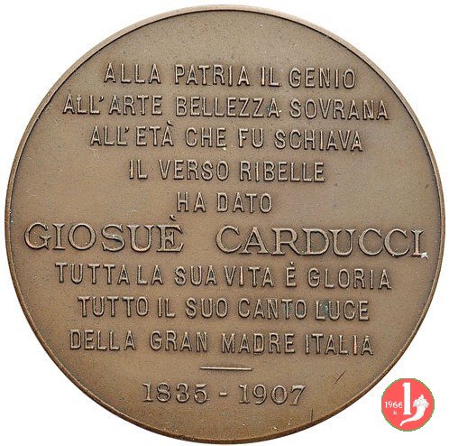 Verso: nel campo: ALLA PATRIA IL GENIO = ALL'ARTE BELLEZZA SOVRANA = ALL' ETA' CHE FU SCHIAVA = IL VERSO RIBELLE = HA DATO = GIOSUE' CARDUCCI = TUTTA LA SUA VITA E' GLORIA = TUTTO IL SUO CANTO LUCE = DELLA GRAN MADRE ITALIA = - = 1835 - 1907