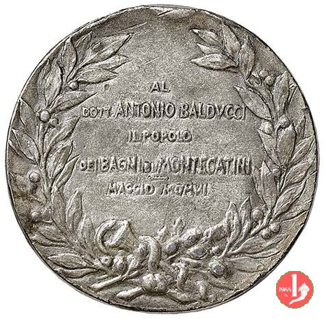 Verso: tra rami d'alloro: AL = DOTT. ANTONIO BALDVCCI = IL POPOLO = DEI BAGNI DI MONTECATINI = MAGGIO MCMVI