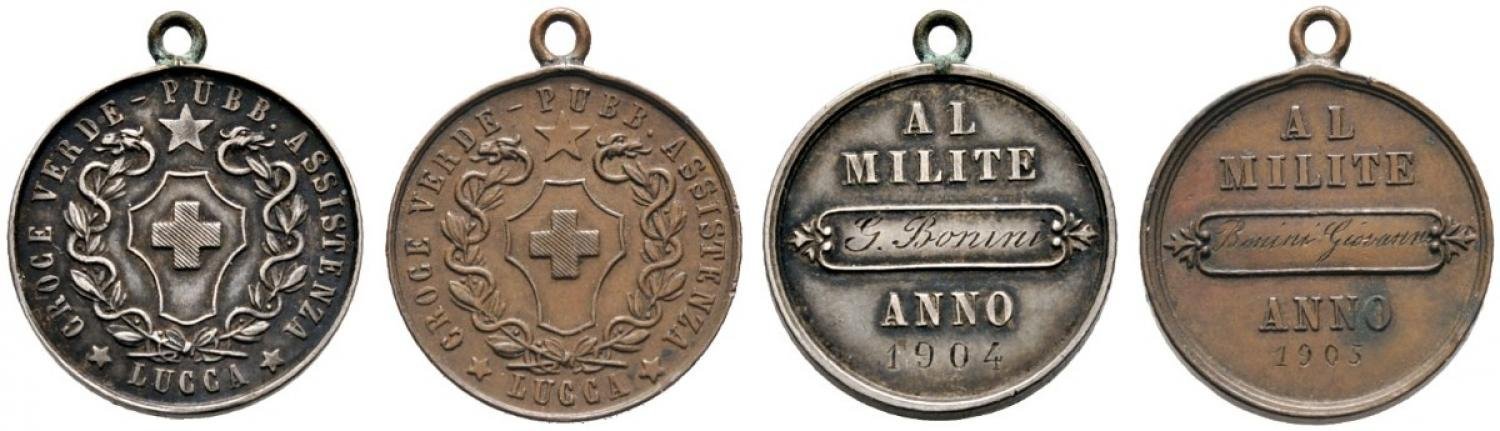 Verso: entro cartiglio tra rami di quercia e posto su cetra raggiante: A = GIACOMO PUCCINI = IL CIRCOLO ITALIANO = DI = BUENOS AIRES = LUGLIO = 1905