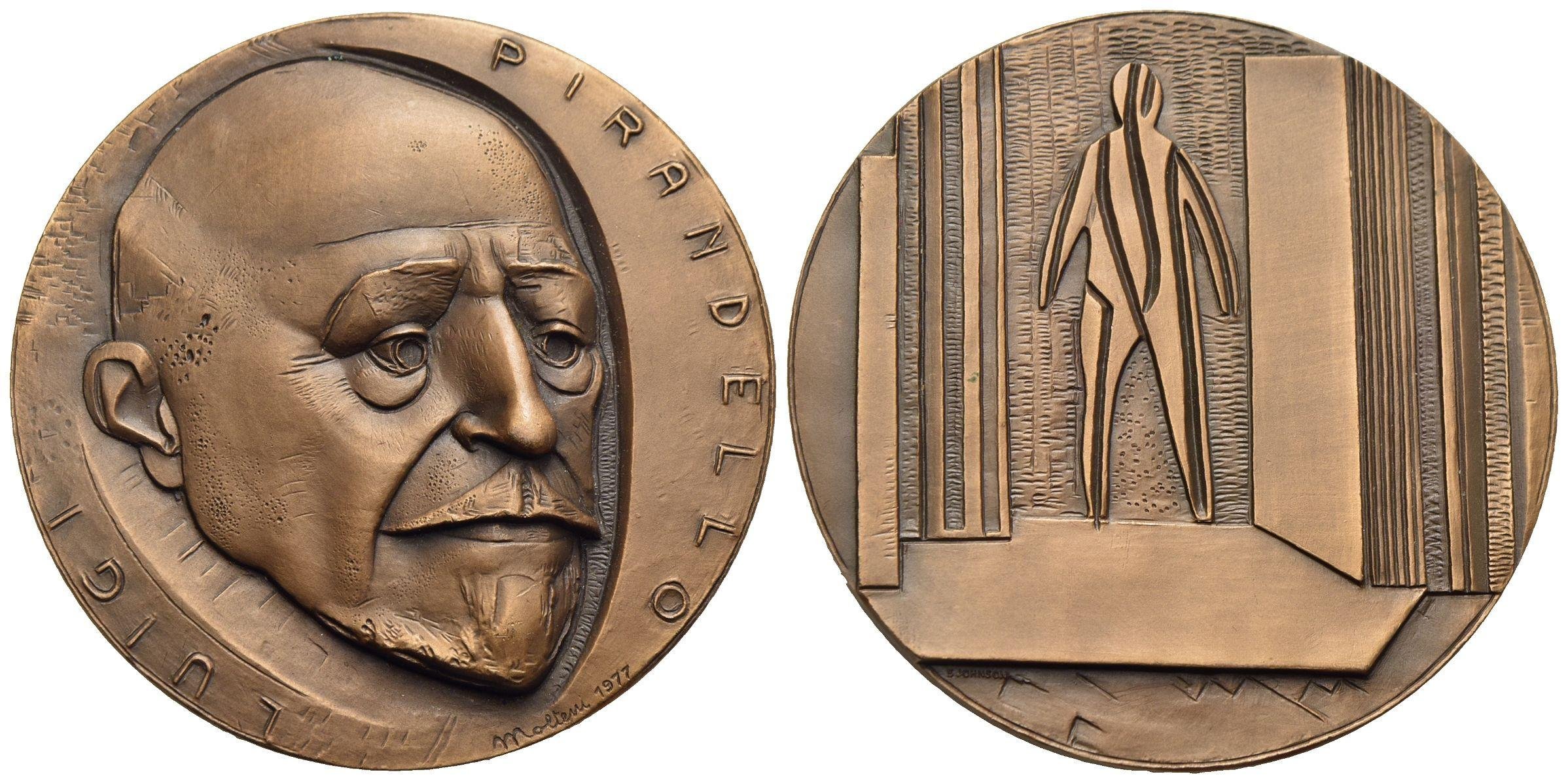 Luigi Pirandello (1934) Dritto: LUIGI _ PIRANDELLO testa di 3/4 a dx in basso: MOLTENI 1977 | |