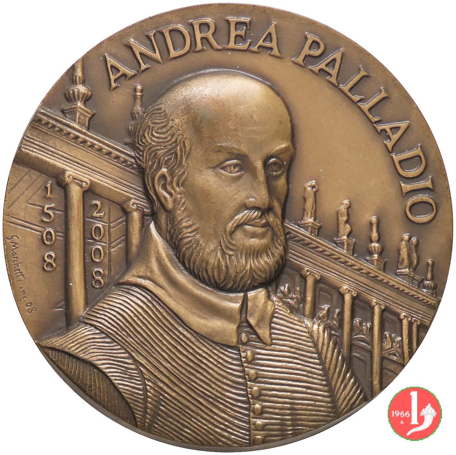500 Andrea Palladio - Palazzo Chiericati 2008 Dritto: ANDREA PALLADIO busto di 3/4 a dx con camicia rigata e sullo sfondo la sommità di Palazzo Chiericati a sx tra le colonne: 1508 _ 2008 a sx presso il bordo: G. MARCHETTI INC. 08 in esergo: PALAZZO CHIERICATI = VICENZA | |