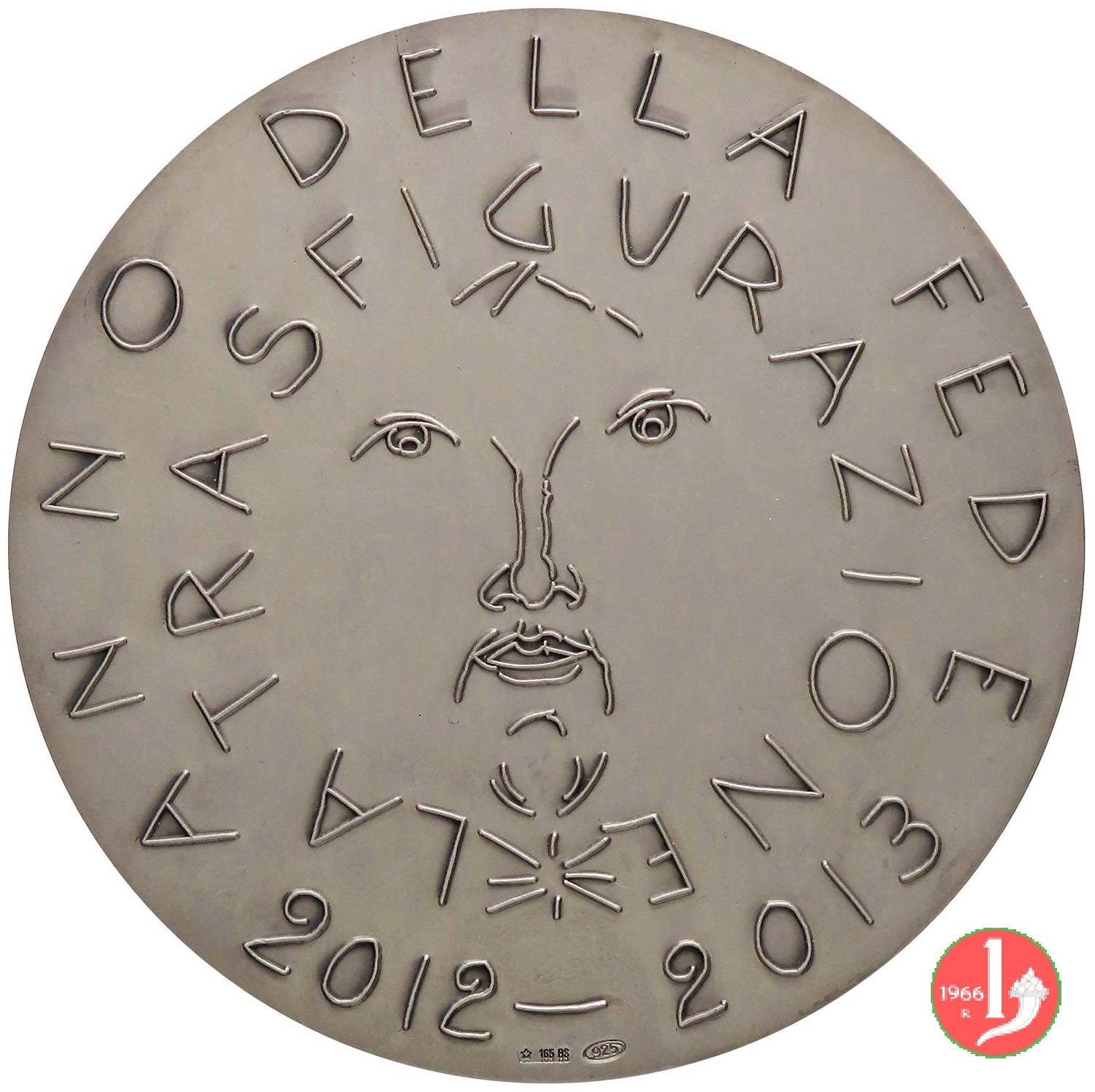 Angelo Grilli - Anno della Fede 2012-2013 Dritto: E' BELLO PER NOI STARE QUI volto di Cristo tra cinque figure oranti in basso: S. JOHNSON _ GRILLI nel contorno interno: TRASFIGURAZIONE # volto stilizzato di fronte | |