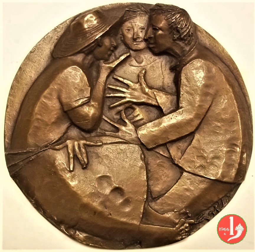 Tommaso Gismondi - Giovanni Fallani 1971 Dritto: Monsignor Fallani abbraccia Papa Paolo VI Verso: due figure in piedi: Dante e Virgilio nel campo a sx in corsivo: GISMONDI | |