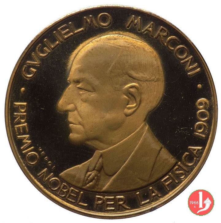 Guglielmo Marconi 1909 Dritto: GVGLIELMO MARCONI = • PREMIO NOBEL PER LA FISICA 1909 • busto a sx con giacca, camicia e cravatta in basso a sx: VEROI bireme attraversa le Colonne d'Ercole in basso a dx: VEROI | |