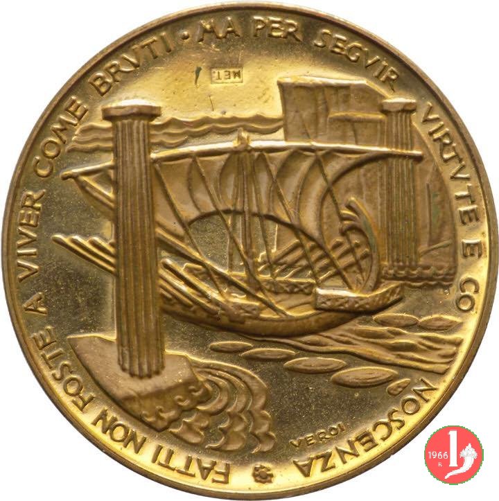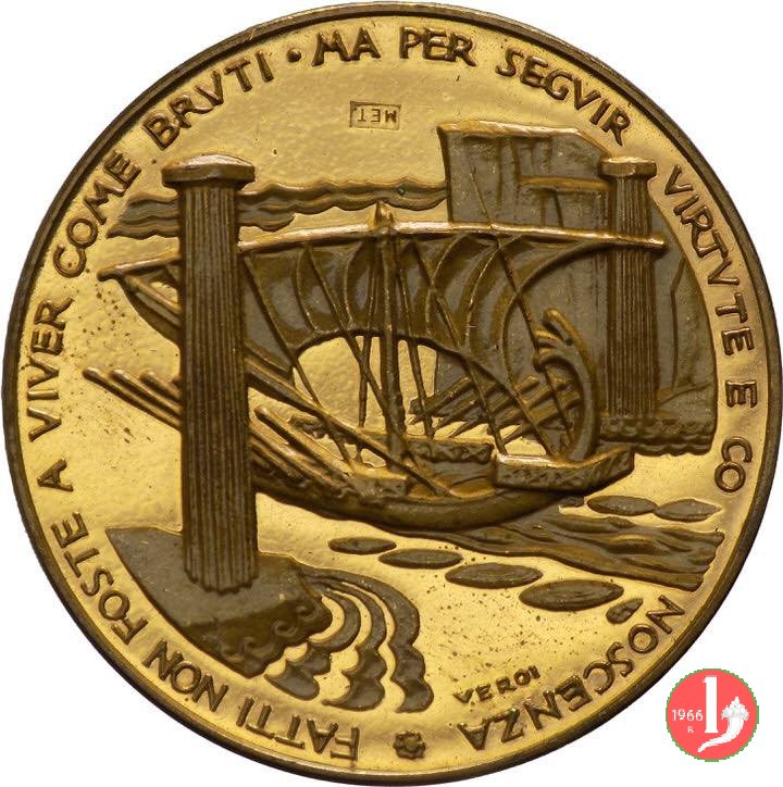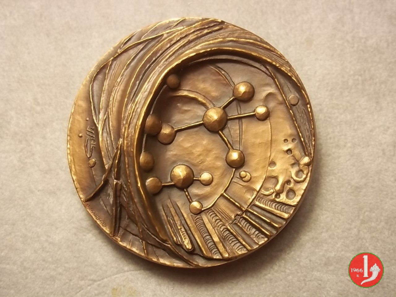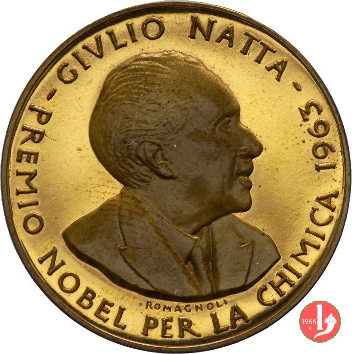 Giulio Natta 1963 Dritto: GIVLIO NATTA = - PREMIO NOBEL PER LA CHIMICA 1963 - busto a dx con giacca, camicia e cravatta sotto: ROMAGNOLI bireme attraversa le Colonne d'Ercole in basso a dx: VEROI | |