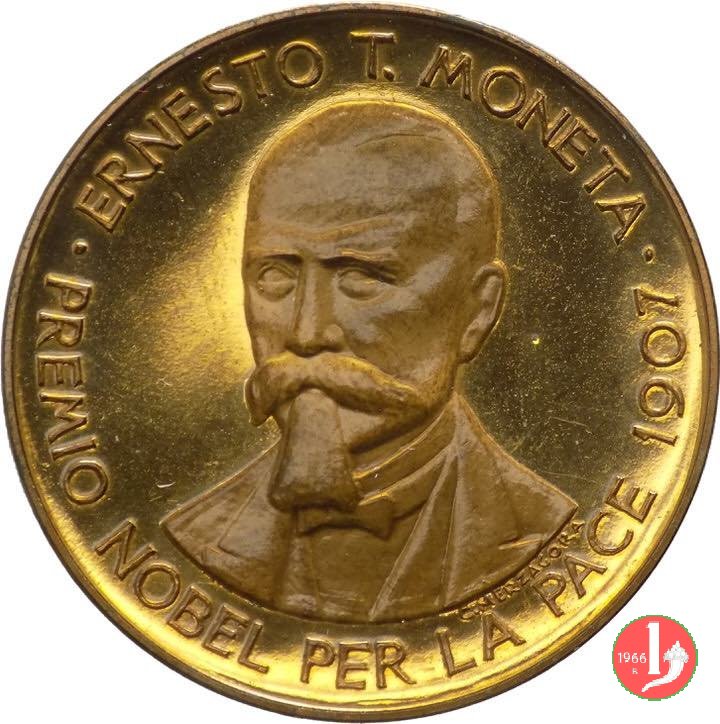 Ernesto Teodoro Moneta (1907) Dritto: MONETA ERNESTO = TEODORO testa a sx in basso: S. JOHNSON a sx, presso il bordo: 1977 | |