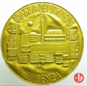 50° Unione FN Vicentina 1995 Dritto: PIAZZA DEI SIGNORI vista della Piazza dei Signori di Vicenza con i prospetti ribaltati sui lati in basso, a dx: VEROI in esergo: VICENZA in basso: S. JOHNSON | |