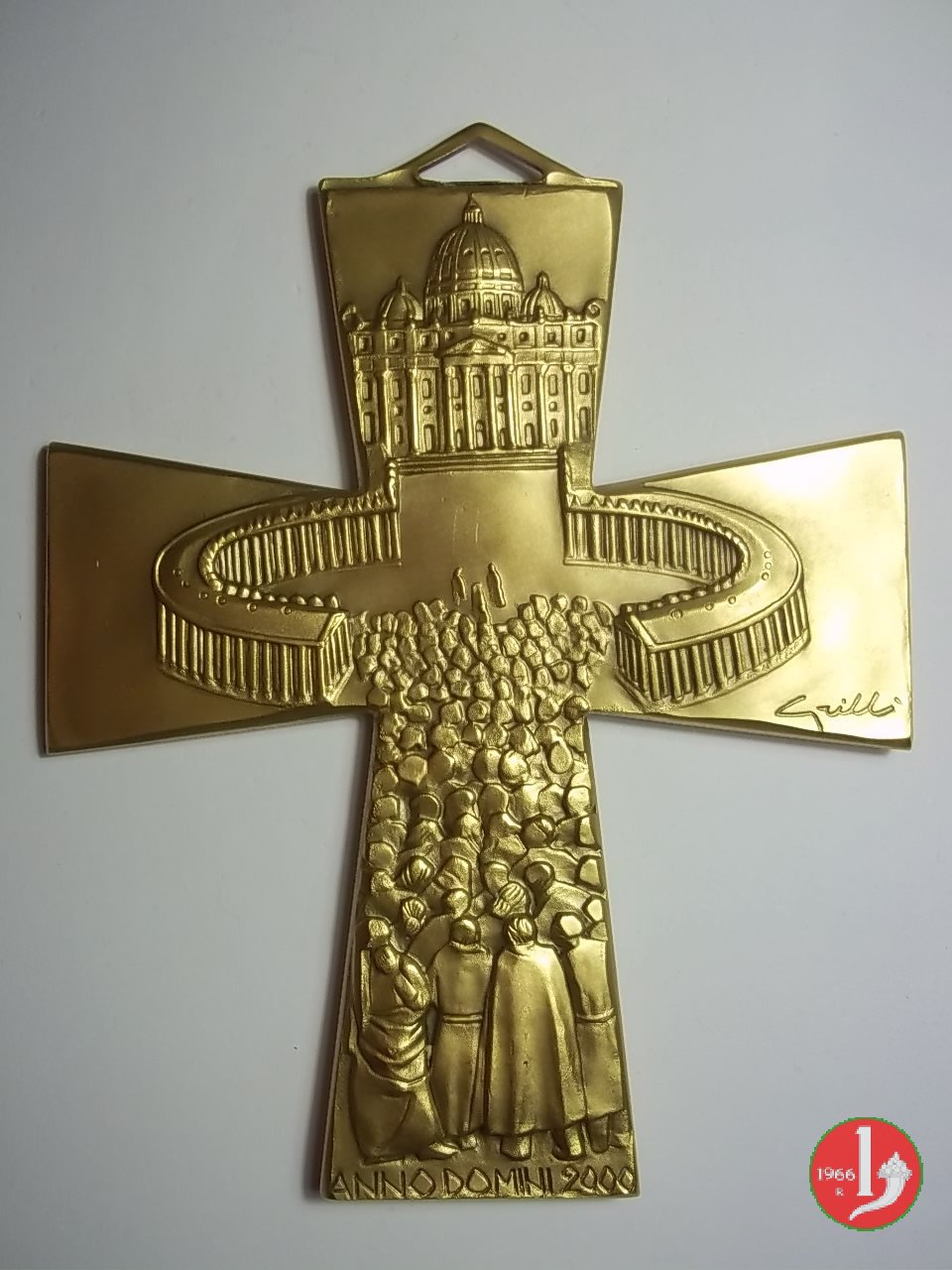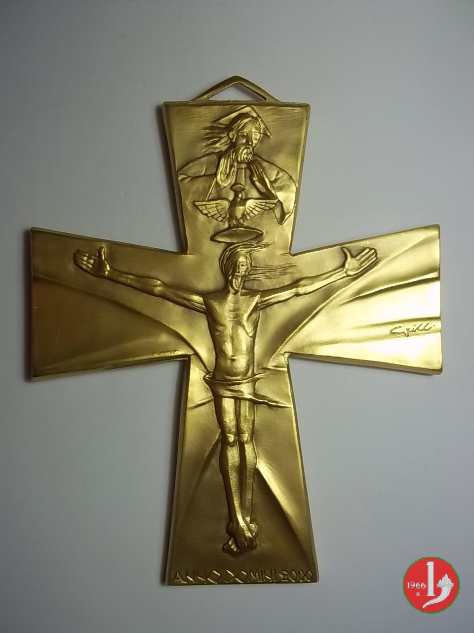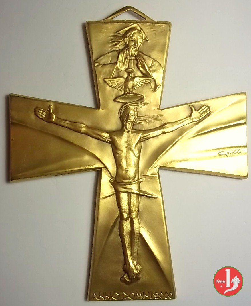 Angelo Grilli - Croce del Giubileo 2000 Dritto: La trinità su Cristo nimbato in Croce sul braccio di dx: GRILLI in basso: ANNO DOMINI 2000 sul braccio di dx: GRILLI in basso: ANNO DOMINI 2000 | |