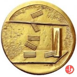 Gio Pomodoro - Medaglia a 5 soli Dritto: composizione con cinque cubi su puleggia in basso: GIO POMODORO in basso: S. JOHNSON | |