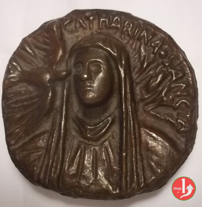 Tommaso Gismondi - Santa Caterina Dritto: CATHARINA • SANCTA busto velato di fronte con colomba Crocefisso su Vangelo aperto | |