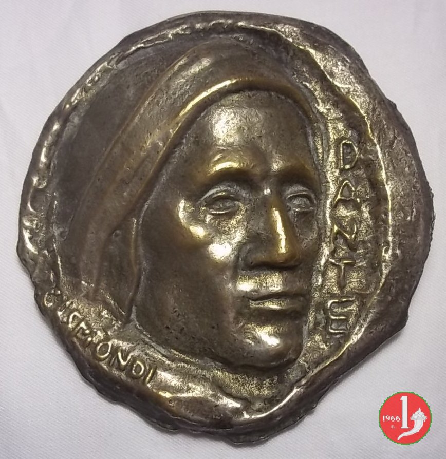 Tommaso Gismondi - Dante e Virgilio 1970 Dritto: testa di Dante di 3/4 a dx con cappuccio nel campo a dx verticalmente DANTE in basso: GISMONDI | |