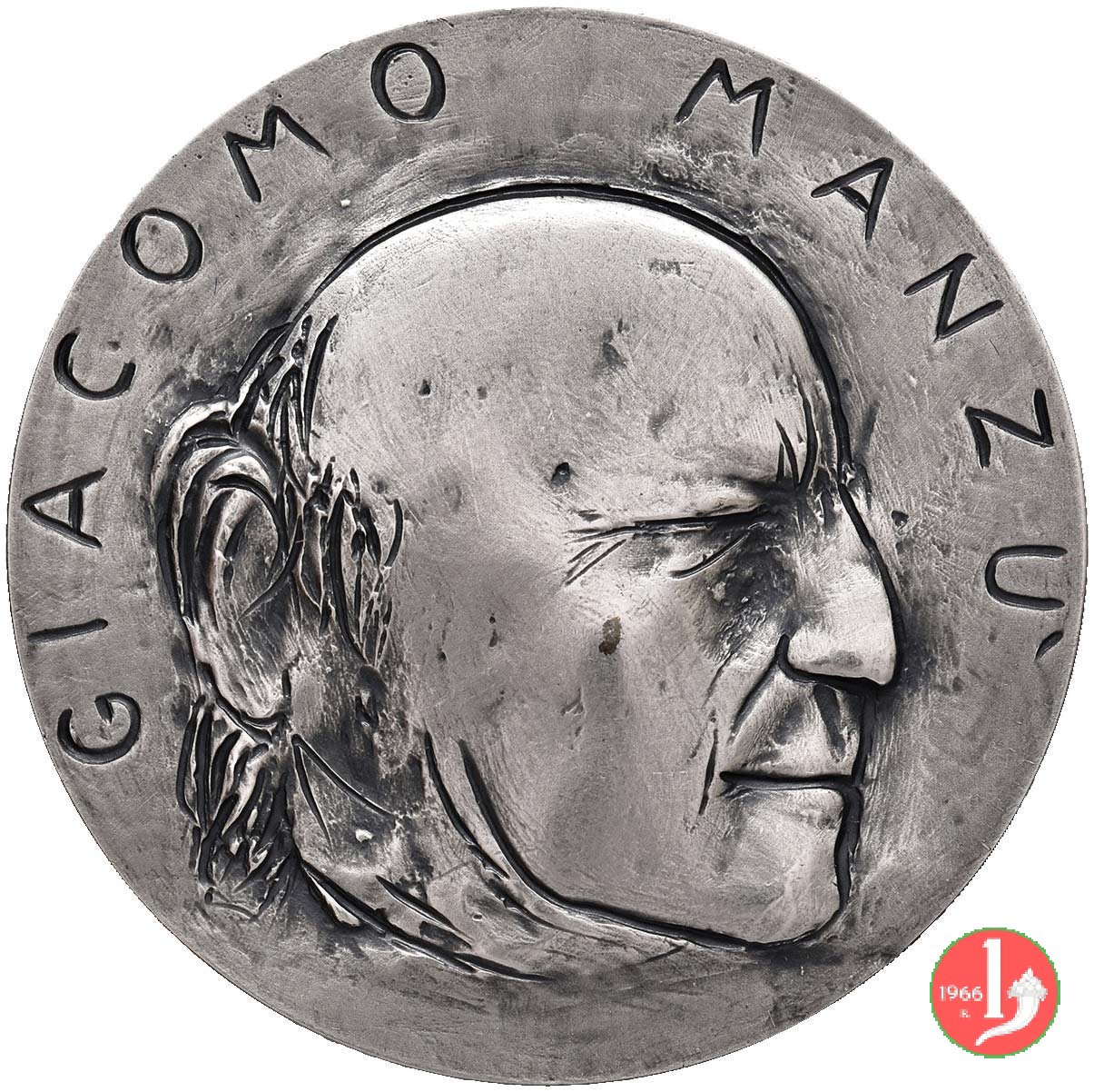 Giacomo Manzú 80° Compleanno 22-12-1988 Dritto: GIACOMO MANZU' testa a dx in basso: logo IPZS | |