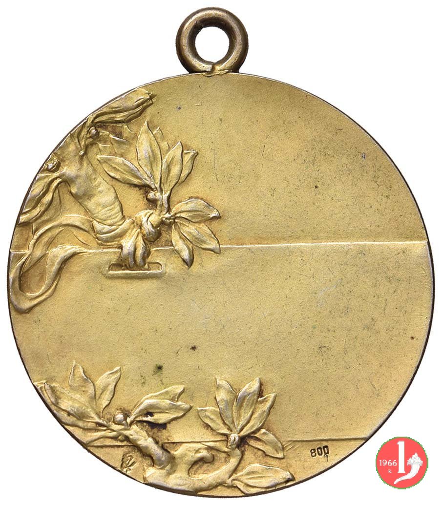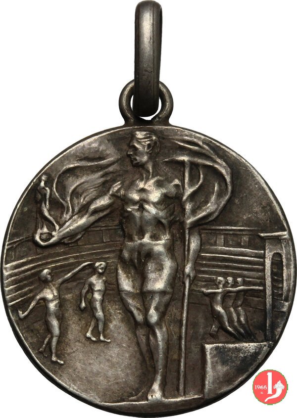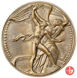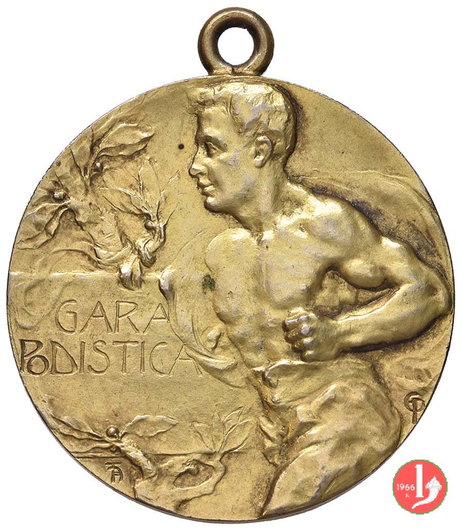 Gara Podistica Dritto: mezzo busto di giovane in corsa verso sx a sx, su ramo d'alloro, entro targa: GARA = PODISTICA in basso, a dx e in monogramma in basso, a sx e in monogramma in basso, a dx: F PAGANI | |