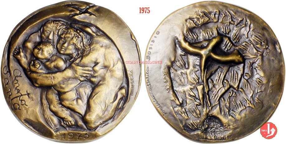 Ettore Calvelli - Anno Santo 1975 Dritto: famiglia abbracciata rivolta a sx a sx pressoil bordo: ANNO = SANTO in basso: 1975 a dx presso il bordo: CALVELLI nel campo: Croce nel campo a sx: CALVELLI | |