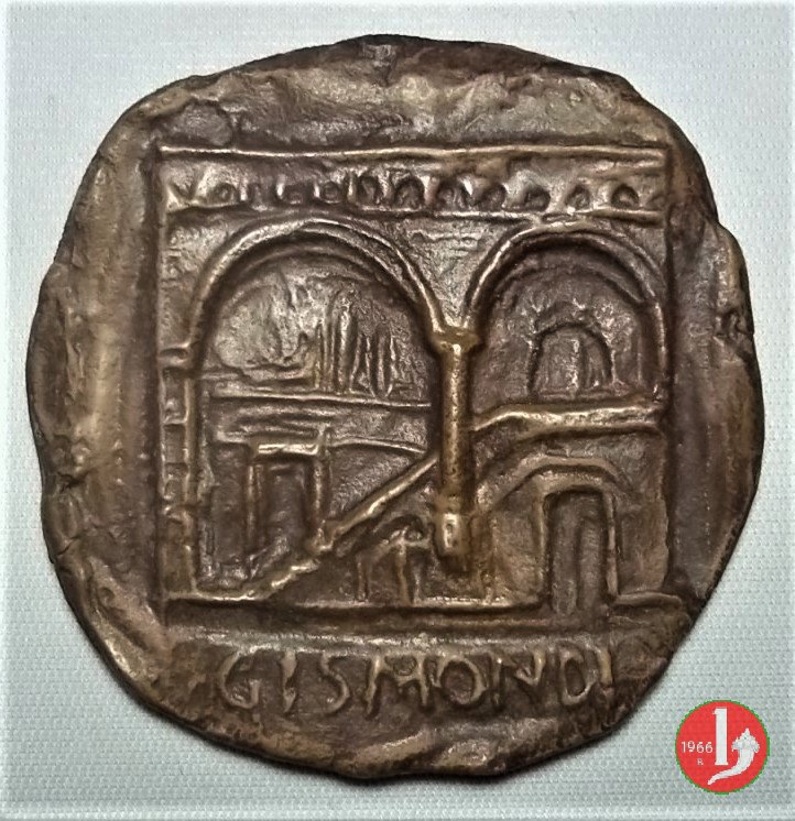 Tommaso Gismondi Dritto: figura di giovane nudo in piedi Verso: donna e bimbo con cavallo in esergo: GISMONDI | |