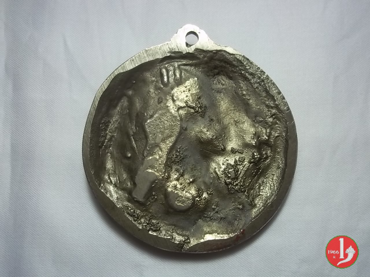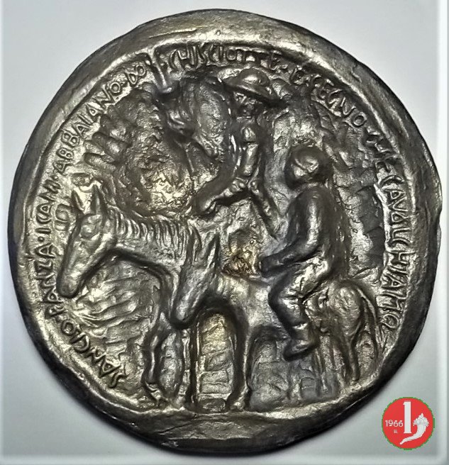 Francesco Messina - Longino (1950) Dritto: cavaliere (San Longino) regge asta verso dx in basso: MESSINA | |