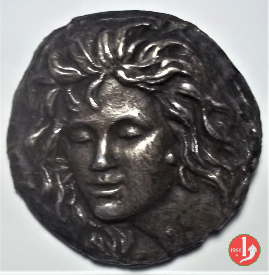 Luigi Teruggi - decagramma Dritto: ΣΥΡΑΚΟΣΙΩΝ Testa di Aretusa a sx con orecchini a tre pendenti e collana di perle; all'intorno: quattro delfini a dx dietro alla testa: conchiglia in basso: TERUGGI | |