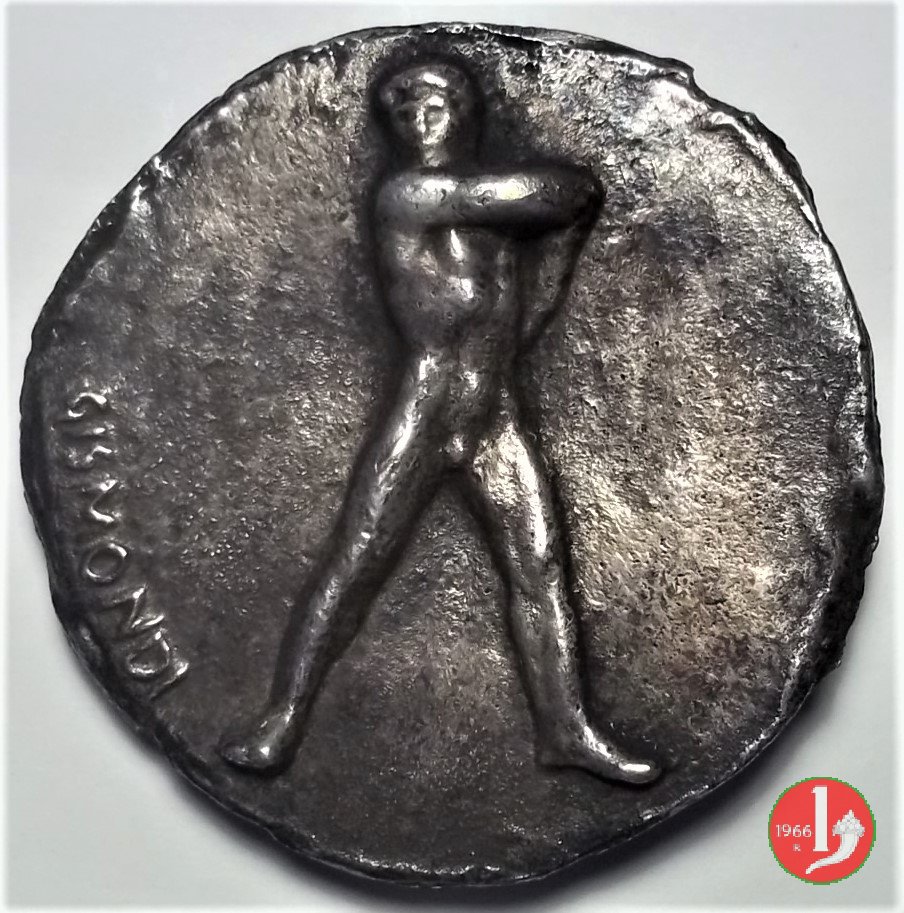 Tommaso Gismondi - Uomo con Cavalli Dritto: Uomo nudo seduto verso dx Verso: due cavalli volti a dx in basso: GISMONDI | |