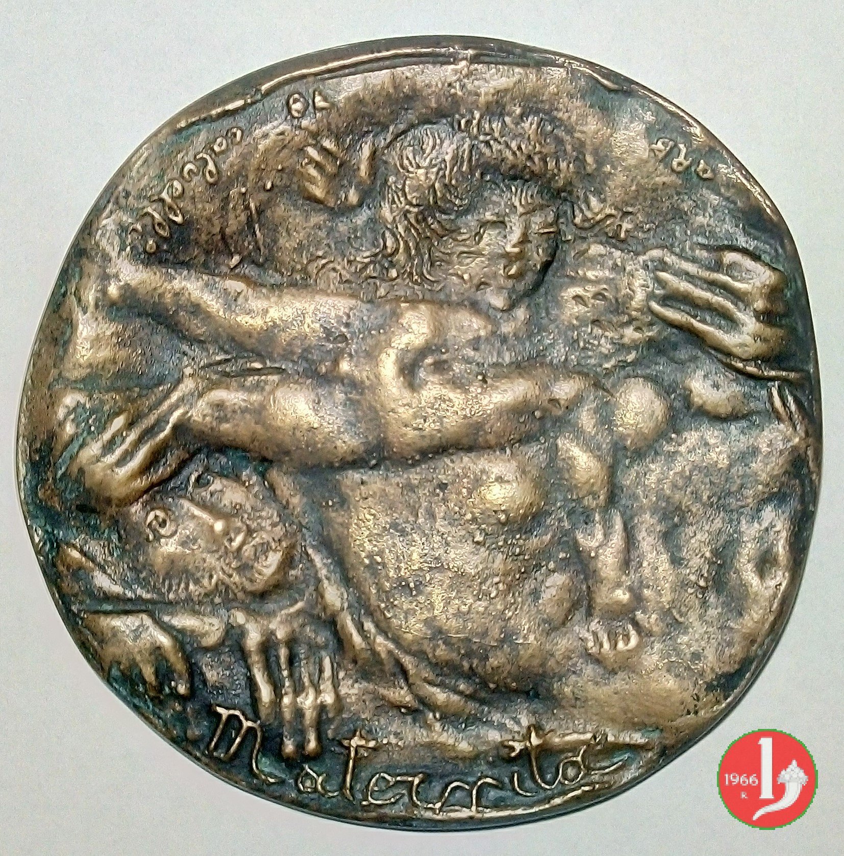 Ettore Calvelli - Maternità 1978 Dritto: in basso: MATERNITA' figura di donna con bambino in alto lungo il bordo: ARS _ 78 CALVELLI | |