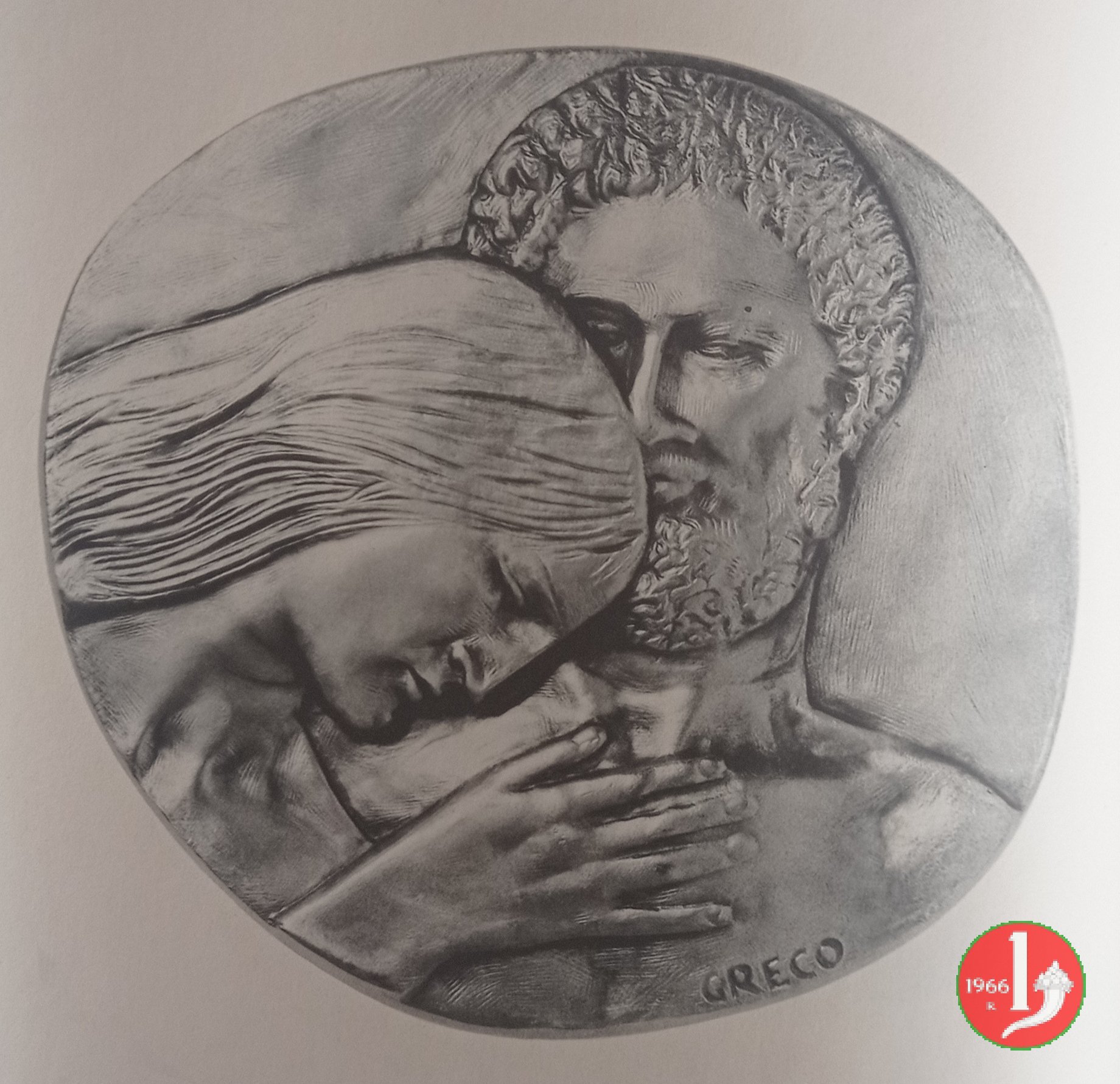 Emilio Greco - Commiato 1989 Dritto: Busti di uomo e donna stretti in un abbraccio in basso a dx: GRECO | |