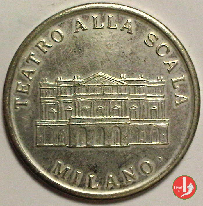 Antonio Salieri 1975 Dritto: • ANTONIO _ SALIERI • busto di 3/4 a dx con giacca e cravatta sotto: stemma coronato di Milano tra altri quattro | |