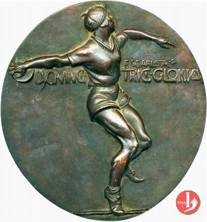 Placchetta - Lancio del Disco Dritto: figura femminile intenta al lancio, di spalle, verso dx ai lati, nel campo: • F SGARLATA • = DYCI • VINCI _ TRICI • GLORIA | |