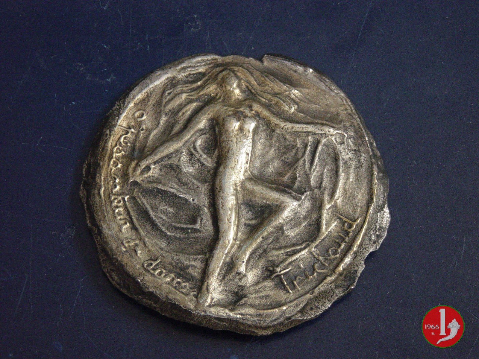 Gara Ciclistica Audax Dritto: figura allegorica della vittoria drappeggiata, velata e alata di fronte e volta a dx, protende serto d'alloro a sx su tre ciclisti impegnati in corsa Verso: due targhe tra rami d'alloro nella superiore: spazio per dedica nella inferiore: GARA = CICLI = STICA sotto inciso: AUDAX | |