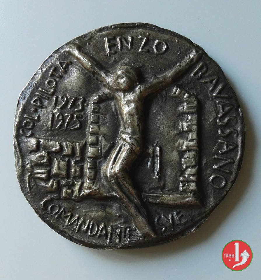 Tommaso Gismondi - Scuola Volo Elicotteri Dritto: SCVOLA _ VOLO • ELICOTTERI vortice si diparte dalla lettera A verso cielo stellato in basso: MVLTVM IN PARVO • nel campo, a sx: GISMONDI Crocifisso nel campo, a sx: 1973 = 1975 | |