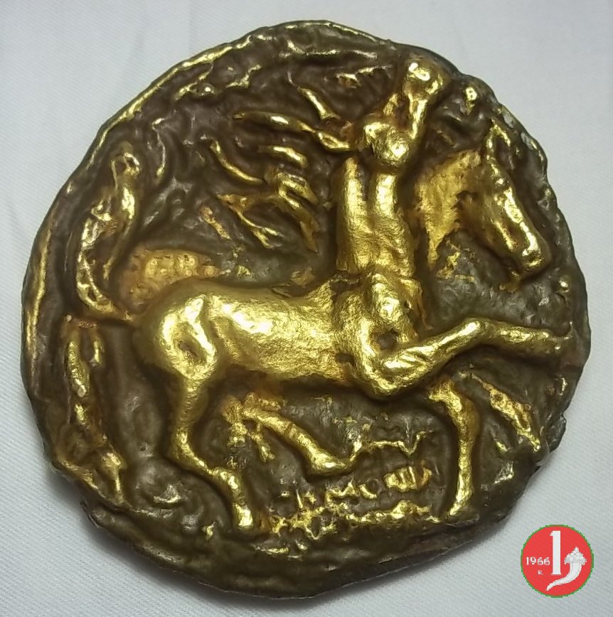 Sergio Giandomenico - Cavalli Dritto: due cavalli verso dx uno incuso rampante e l'altro in rilievo in corsa in basso: GIANDOMENICO | |