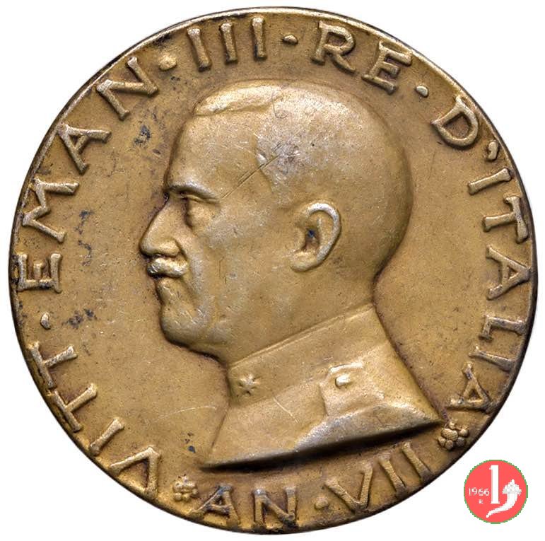 Fortitudo Eius Rhodum Tenuit - FERT 1929 Dritto: VITT • EMAN • III • RE • D'ITALIA = * AN • VII * busto a sx con divisa militare Calice floreale affiancato a sx da stella e sormontato da Stemma Savoia | |