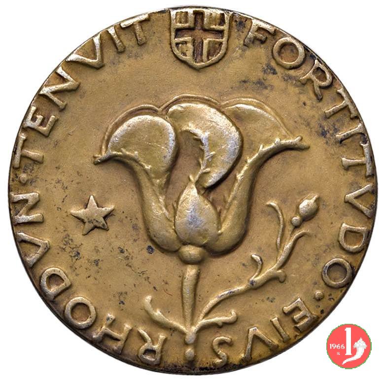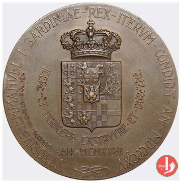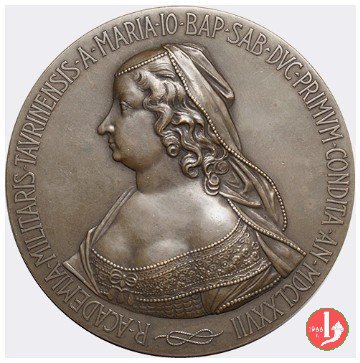 Accademia Militare di Torino Dritto: R • ACADEMIA • MILITARIA • TAVRINENSIS • A • MARIA • IO • BAP • SAB • DVC • PRIMVM • CONDITA • AN • MDCLXXVII (nodo d'amore) busto velato a sx di Maria Giovanna Battista Stemma coronato nel cerchio sotto: ICERE • ET • DISICERE • EXTRVERE • ET • DIRVERE in basso: • AN • MCMXXVII sotto al nodo d'amore: SACCHINI - MILANO | |