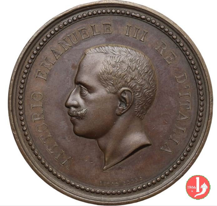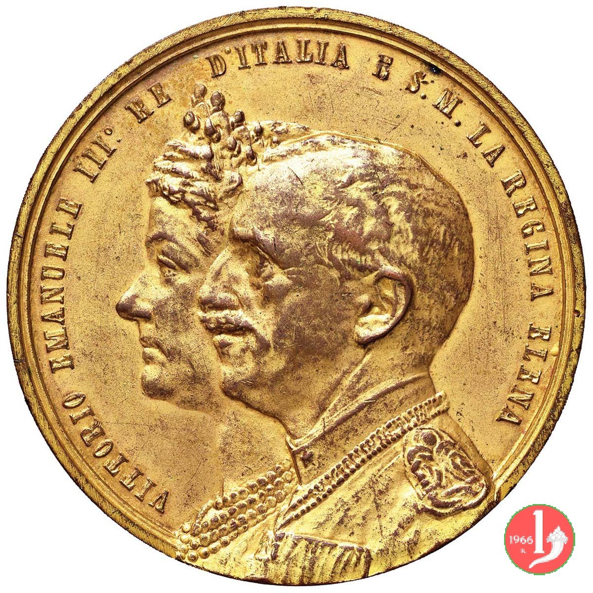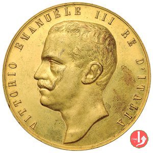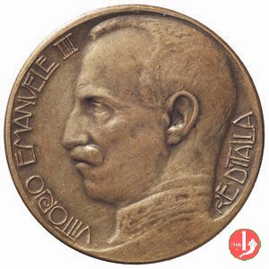 Giubileo del 25° di Regno Dritto: busto a sx con divisa in basso, a dx: E. Boninsegna sotto: DA VENTICINQVE ANNI = REGNA = VITTORIO EMANVELE III = RE SAGGIO = E VITTORIOSO | |