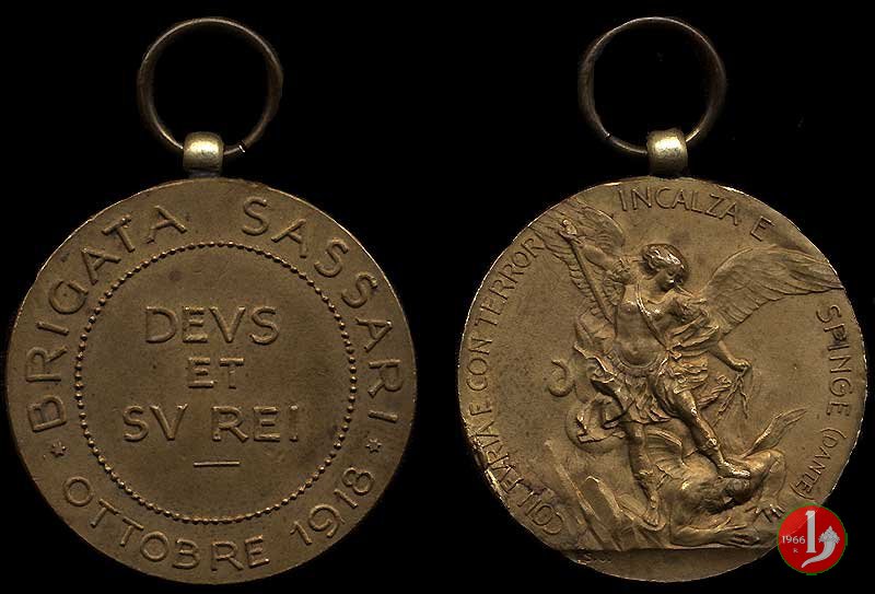 Brigata Sassari Dritto: BRIGATA SASSARI = * OTTOBRE 1918 * nel campo: DEVS = ET = SV REI = - L'arcangelo Gabriele in piedi di fronte con spada, schiaccia la testa a Demone | |