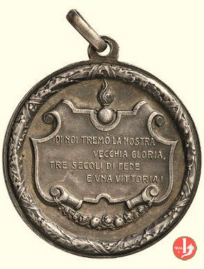 Comunicato della Vittoria del Gen. Diaz 04-11-1918 Dritto: in alto in smalti: stemmi di Trento e Trieste con al centro lo stemma del Regno d'Italia tra rami d'alloro nel campo: 4 - NOVEMBRE - 1918 = - = LA GVERRA CONTRO = L'AVSTRIA VNGHERIA..... = •...........E' VINTA. = I RESTI DI QVELLO CHE = FV VNO DEI PIV' POTENTI = ESERCITI DEL MONDO RI= = SALGONO IN DISORDINE E = SENZA SPERANZA LE VAL= = LI CHE AVEVANO DISCESE = CON ORGOGLIOSA SI= = CVREZZA. = DIAZ in basso a sx: LDB | |