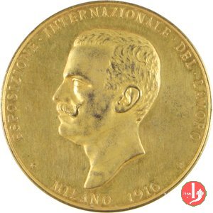 Esposizione Internazionale del Lavoro - Milano 1916 Dritto: ESPOSIZIONE • INTERNAZIONALE • DEL • LAVORO = * MILANO 1916 * busto a sx Stemma turrito di Milano su cartiglio entro serto d'alloro | |