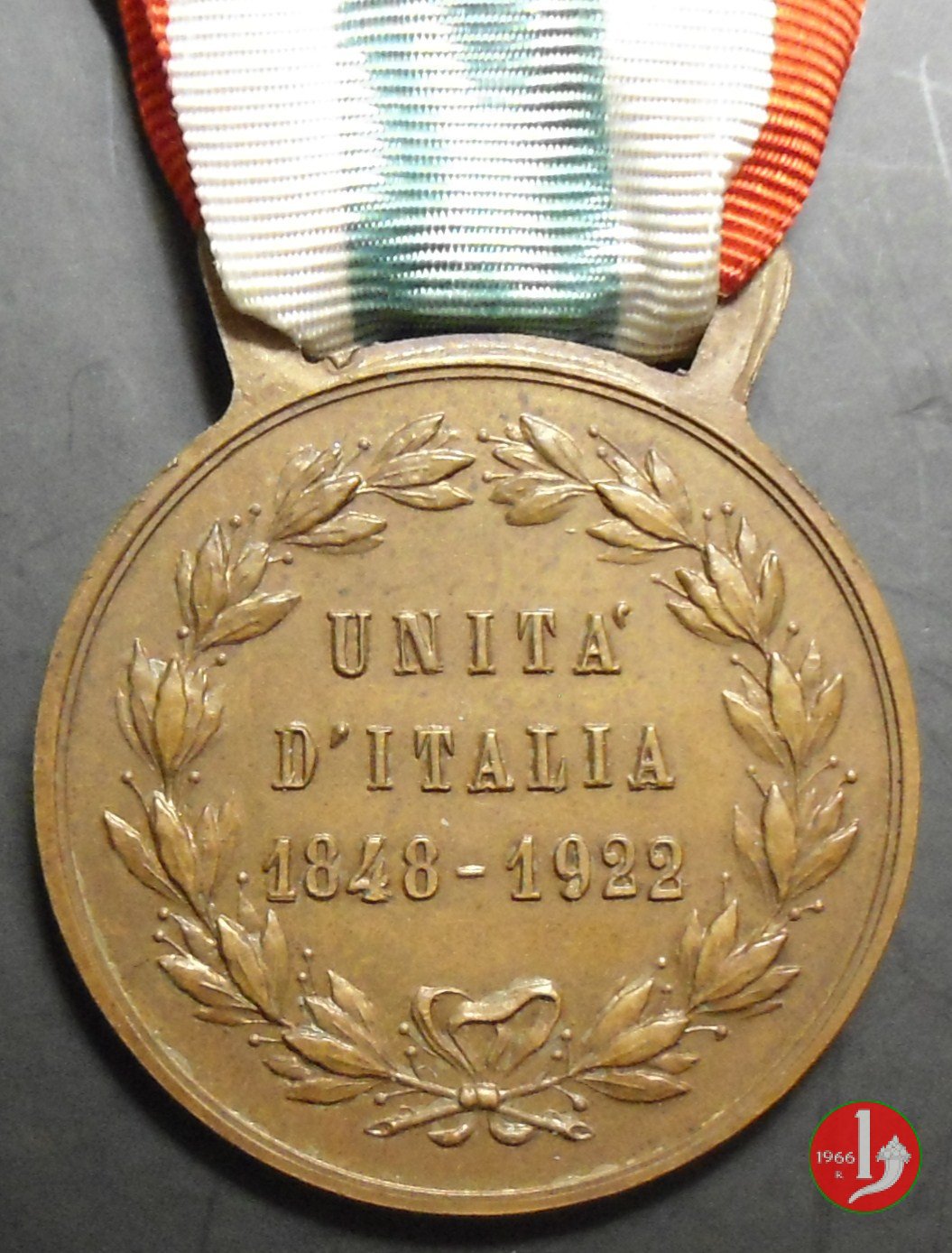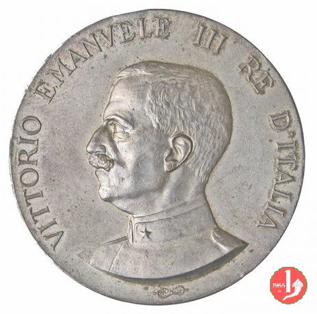 Al Fattore della III° Italia Dritto: 1848 * 1870 = * 1918 * Lupa Capitolina a sx, sormontata dagli Stemmi a scudetto di Trieste e Trento e da Stella raggiante in esego: R S nel campo entro cerchio continuo: VITT. EMAN. III | |