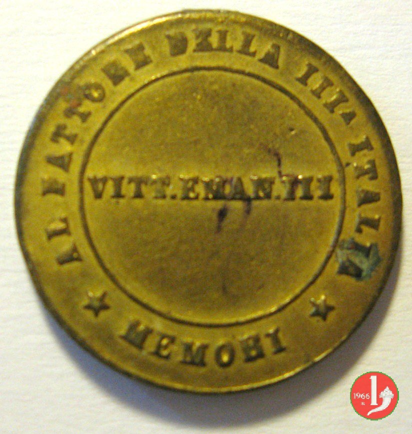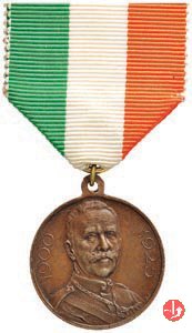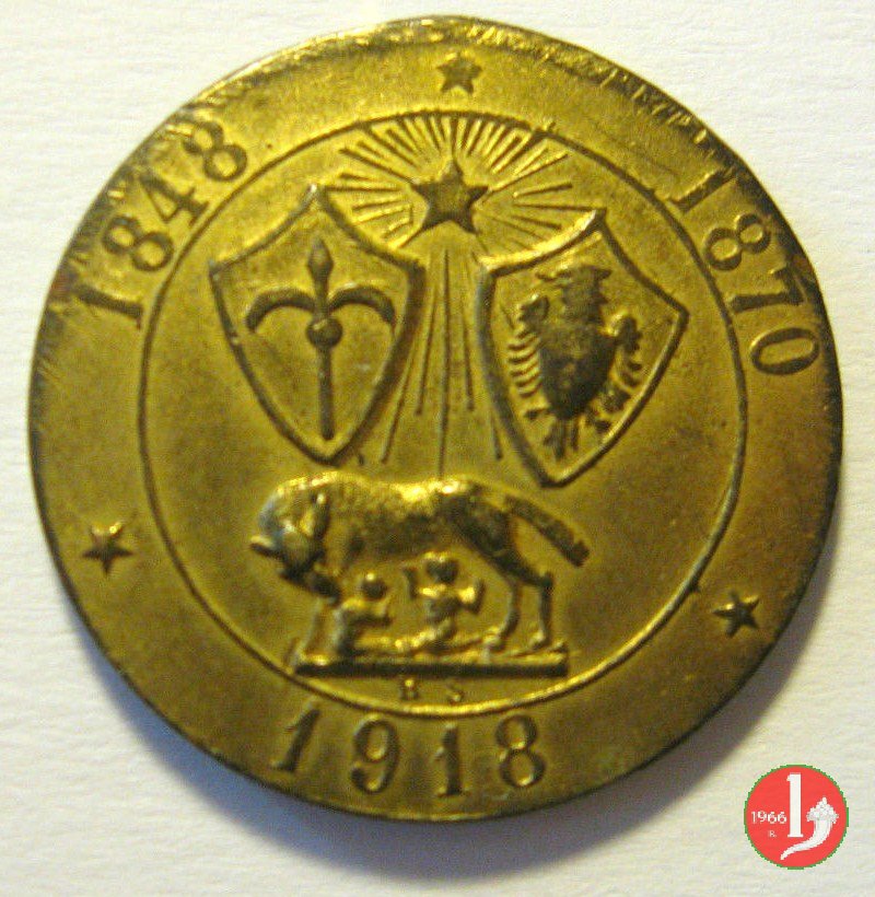 Liberazione di Trento e Trieste - Al Fattore Dritto: 1848 * 1870 = * 1918 * Stella raggiante tra gli stemmi di Trento e Trieste e in basso Lupa Capitolina a sx nel campo, entro cerchio continuo: VITT. EMAN. III | |