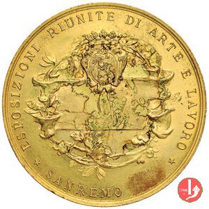 Esposizione Riunite di Arte e Lavoro Dritto: VITTORIO EMANUELE III RE D'ITALIA testa a sx entro cornice floreale cartella sormontata da Stemma coronato | |