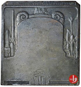 Placchetta Liberazione di Trento e Trieste Dritto: tra gladi verticali legati da nastri e uniti, in basso, da festone: in alto, entro medaglia testa a sx di Vittorio Emanuele III ai lati: 3 NOV _ 1918 sotto: IL _ TRICOLORE = SVENTOLA SVL CASTELLO = DEL BVON CONSIGLIO = E SVLLA TORRE = DI S. GIVSTO in basso, entro nastro fermato al centro da stemmi: TRENTO _ TRIESTE sotto: LIBERATE | |