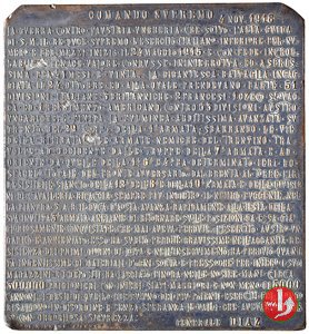 Placchetta Comunicato della Vittoria del Gen. Diaz 1918 Dritto: in alto, entro riquadro: RITVM JVSTITIA VINDEX AERE EXPRESSVM targa vuota tra allori e gladi verticali in basso maschera laureata di fronte su nastro: CASA (?) in alto, a sx: 4 NOV. 1918 nel campo: LA GVERRA CONTRO L'AVSTRIA VNGHERIA CHE SOTTO L'ALTA GVIDA = DI S.M. IL RE DVCE SVPREMO L'ESERCITO ITALIANO INFERIORE PER NV = MERO E PER MEZZI INIZIO' IL 24 MAGGIO 1915 E CON FEDE INCROL = labile e tenace valore condusse ininterrotta ed asprissima per 41 mesi, è vinta. La gigantesca battaglia ingaggiata il 24 dello scorso ottobre ed alla quale prendevano parte 51 = divisioni italiane, 3 britanniche, 2 francesi, 1 cieco slovacca ed 1 reggimento americano, contro 73 divisioni austroungariche, è finita. La fulminea e arditissima avanzata del XXIX Corpo d'Armata su Trento, sbarrando le vie della ritirata alle armate nemiche del Trentino, travolte ad occidente dalle truppe della VII armata e ad oriente da quelle della I, VI e IV, ha determinato ieri lo sfacelo totale della fronte avversaria. Dal Brenta al Torre l'irresistibile slancio della XII, della VIII, della X armata e delle divisioni di cavalleria, ricaccia sempre piú indietro il nemico fuggente. Nella pianura, S.A.R. il Duca d'Aosta avanza rapidamente alla testa della sua invitta III armata, anelante di ritornare sulle posizioni da essa già vittoriosamente conquistate, che mai aveva perdute. L'Esercito Austro-Ungarico è annientato: esso ha subito perdite gravissime nell'accanita resistenza dei primi giorni e nell'inseguimento ha perduto quantità ingentissime di materiale di ogni sorta e pressoché per intero i suoi magazzini e i depositi. Ha lasciato finora nelle nostre mani circa trecentomila prigionieri con interi stati maggiori e non meno di cinquemila cannoni. I resti di quello che fu uno dei piú potenti eserciti del mondo risalgono in disordine e senza speranza le valli che avevano discese con orgogliosa sicurezza. = GENERALE DIAZ | |
