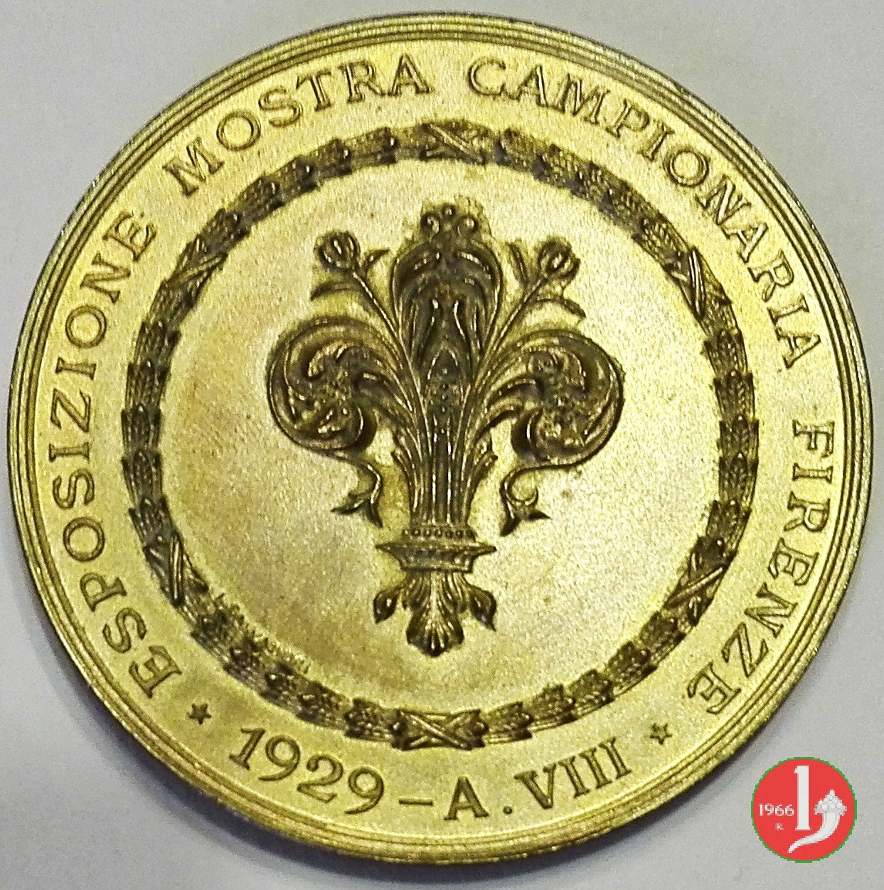 Mostra Campionaria Firenze Dritto: VITTORIO EMANUELE III RE D'ITALIA busto a sx con divisa militare sul taglio spalla: L. SALVADORI sotto: nodo d'amore entro corona di calici floreali: giglio di Firenze | |