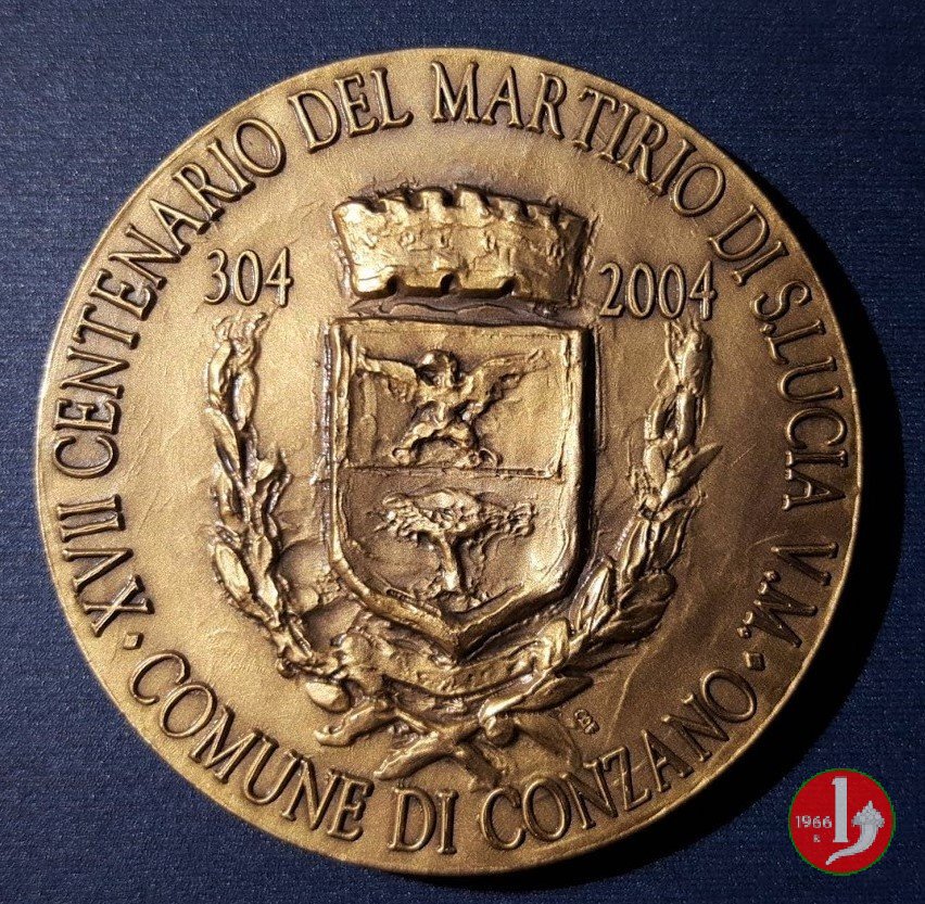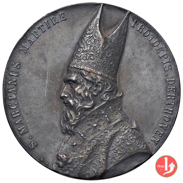 entro doppia cornice quadrilobata e cuspidata con foglie agli angoli: RICORDO = DELLE FESTE = CENTENARIE = DI = S. EVASIO V.M.