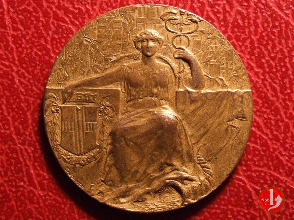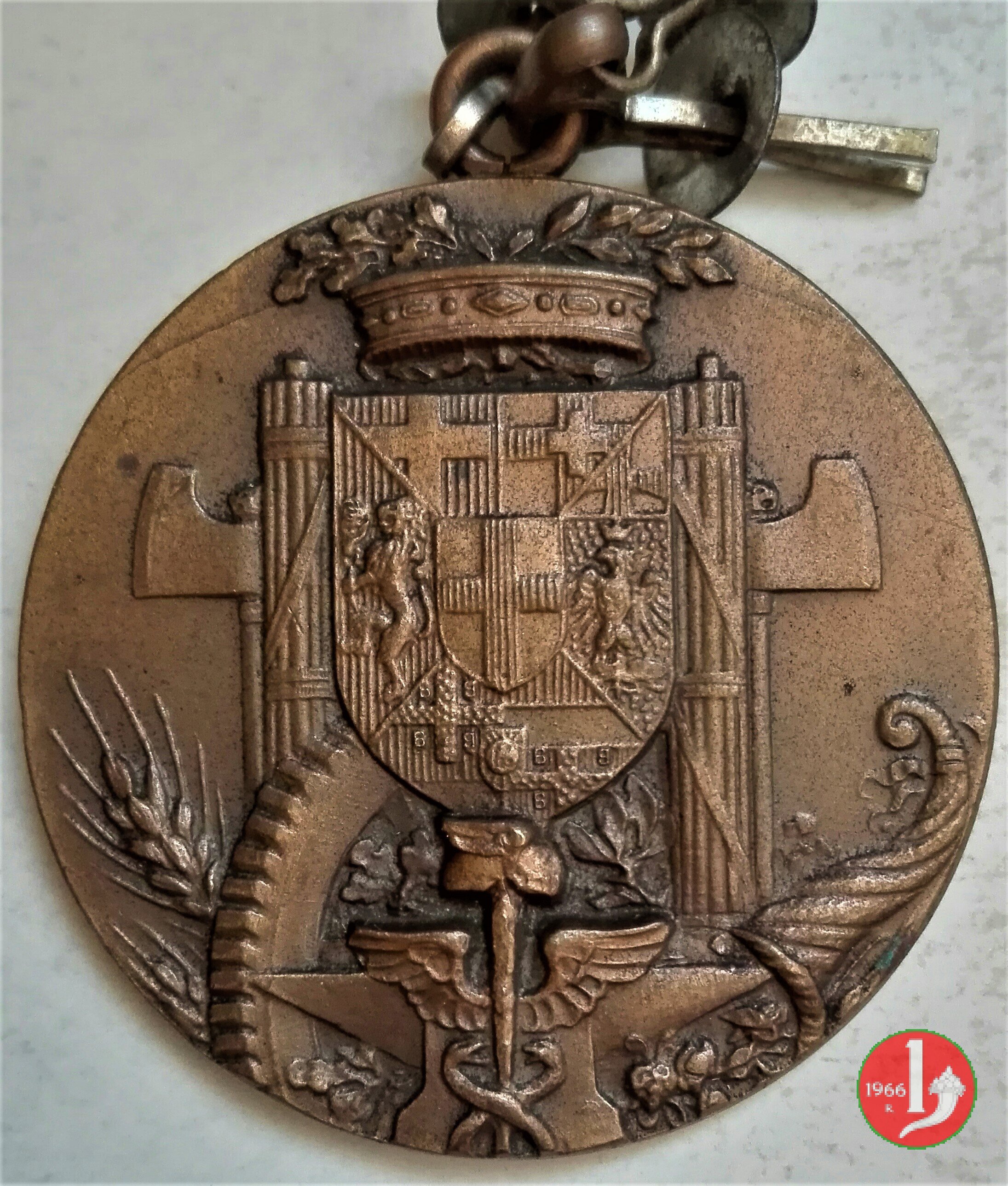 Verso: nel campo: SOCIETA' = MUTUA DI SOCCORSO = DEI = MEDICI-CHIRURGHI = DEL PIEMONTE = 1839-1939 = XVII E.F.