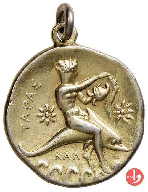 Tritone a cavallo di delfino a dx tra fiori