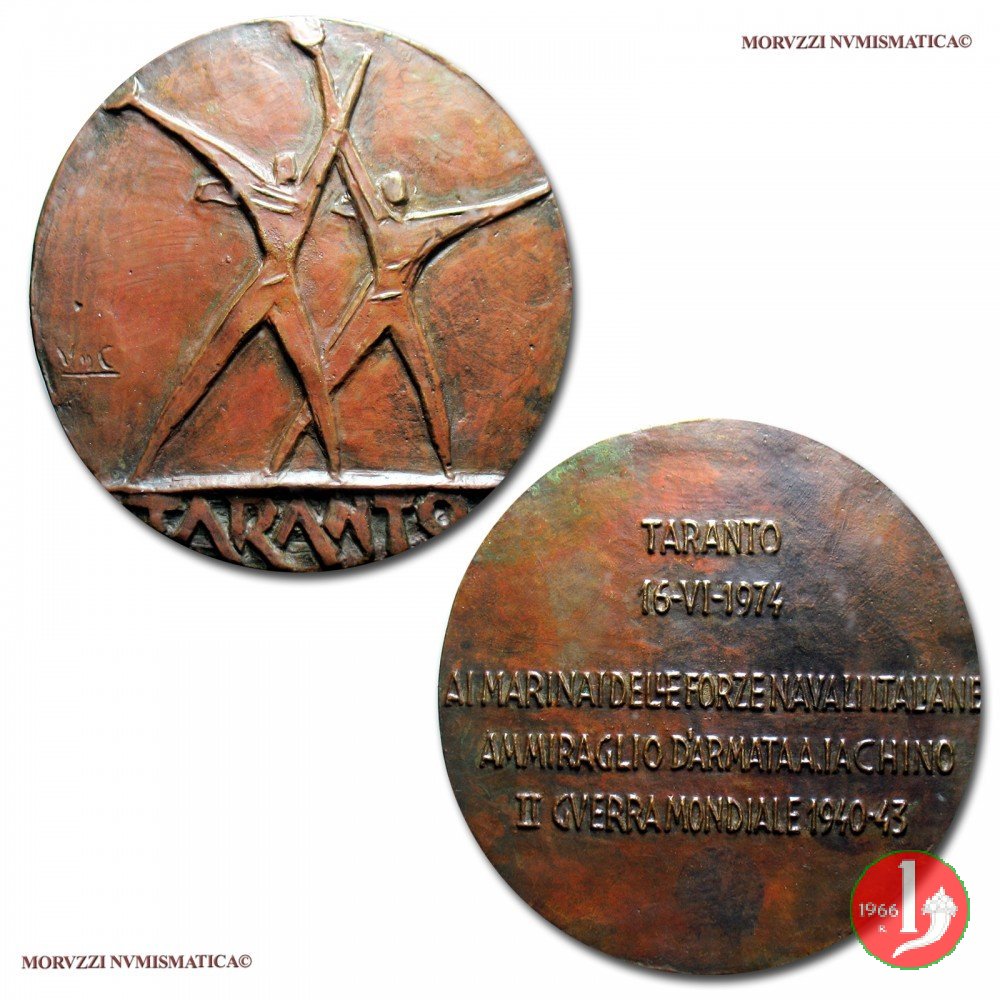 Verso: nel campo: TARANTO = 16-VI-1974 = AI MARIANI DELLE FORZE NAVALI ITALIANE = AMMIRAGLIO D'ARMATA A. IACHINO = II GUERRA MONDIALE 1940-43