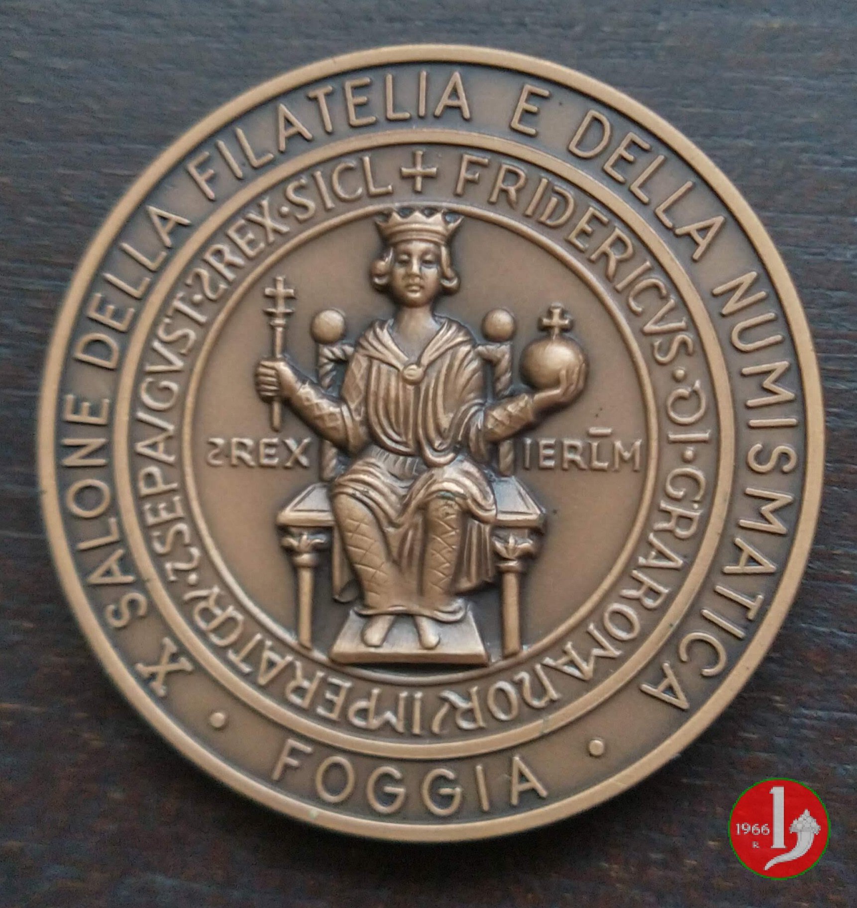entro cerchio continuo la riproduzione del sigillo di Federico II di Svezia col titolo di Rex Ierusalem: + FRIDERICUS DI GRA ROMANORUM IMPERATOR ET SEP AUGUST REX SICIL