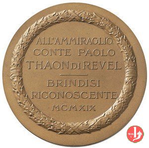 Verso: nel campo: A = NICOLA BALENZANO = CHE ISPIRANDOSI = ALL'OPERA TENACE E COSTANTE = DEL CONSIGLIO PROVINCIALE DI BARI = SEGRETARIO DI STATO = IL DEBITO PIV SACRO DELLA NAZIONE = VERSO LA GENTE DI PVGLIA SODDISFECE = MEMORI E GRATI = PER RICORDO DELLA XX ELEZIONE = A LORO PRESIDENTE = I COLLEGHI RAPPRESENTANTI = LA PROVINCIA = - = BARI = MCMX