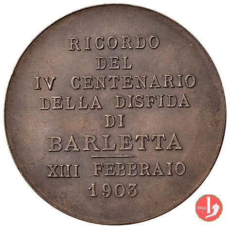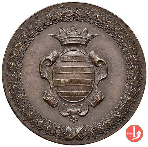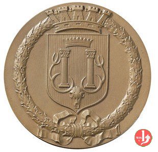 Verso: nel campo: AI = F.LLI PETRUZZELLI = ED ALL'ING. MESSENI = CHE ADORNARONO BARI = DI UN NUOVO TEATRO = INSIGNE = PER BELLEZZA E MAGNIFICENZA = QUESTO RICORDO = PER PUBBLICA SOTTOSCRIZIONE §= UN COMITATO DI CITTADINI = D.D.