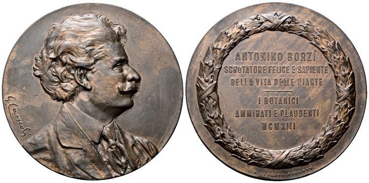 Antonio Borzi 1913 Dritto: Busto a dx con giacca, camicia e cravatta a dx presso il bordo in corsivo: G Cassioli in basso: M. ZINGONI - FIRENZE | |