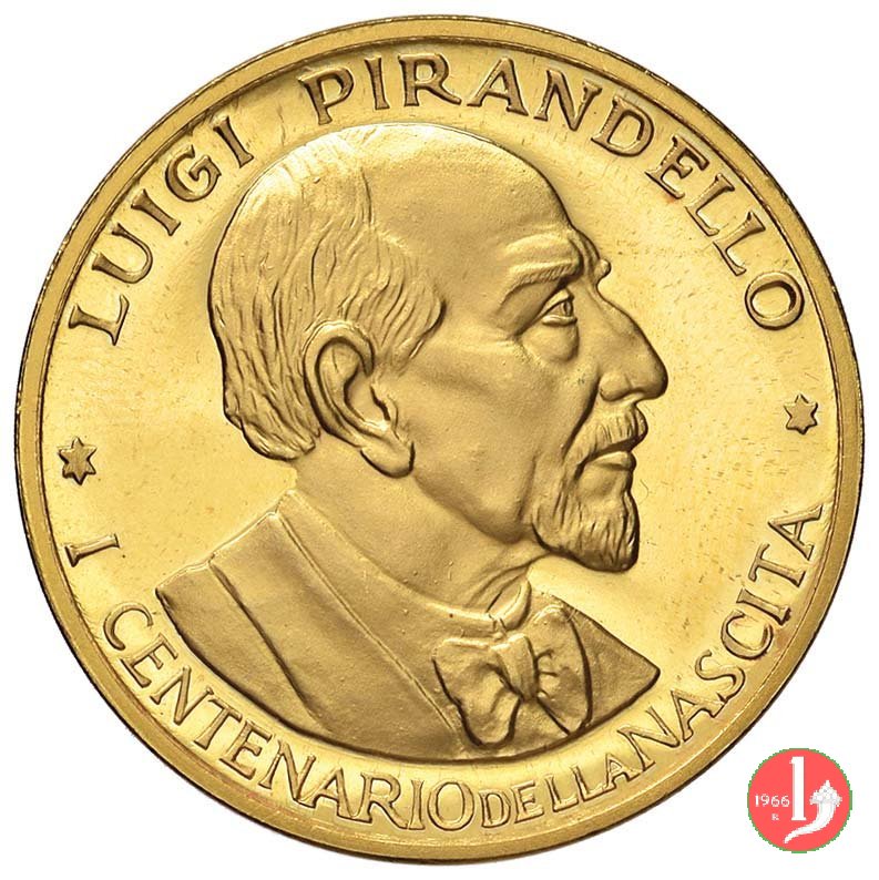 Luigi Pirandello 1967 Dritto: LUIGI PIRANDELLO = * I CENTENARIO DELLA NASCITA * busto a dx con giacca, camicia e papillon | |